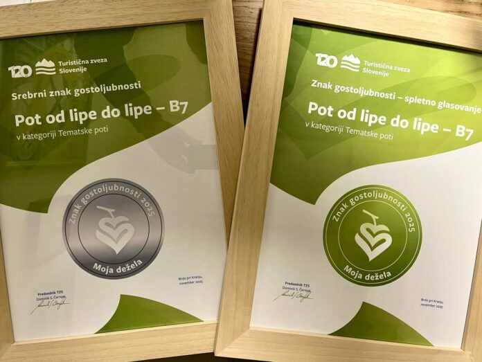 Tematsko-turistična pohodna POT OD LIPE DO LIPE je na slovesnosti prireditve Moja dežela – lepa in gostoljubna (Dnevi slovenskega turizma), ki je v dneh od 10.-12. novembra 2025 potekala na Brdu pri Kranju, v kategoriji tematskih poti prejela Zeleni znak gostoljubja 2025 – ki so ga izglasovali ljudje, pohodniki …, prislužila pa si je tudi Srebrni znak gostoljubja 2025 po oceni strokovne komisije. S temi priznanji Turistična zveza Slovenije nagrajuje izjemne dosežke na področju gostoljubnosti in turistične ponudbe, je zapisano v sporočilu za javnost na spletni strani Občine Laško.