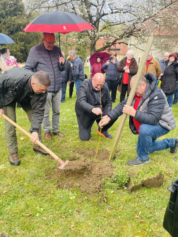 Pri skupni zasaditvi drevesa so sodelovali župan, čebelar in gozdar Bojan Bračič iz Zavoda za gozdove Slovenije, Območne enote Slovenske Konjice, kjer skrbijo za park.