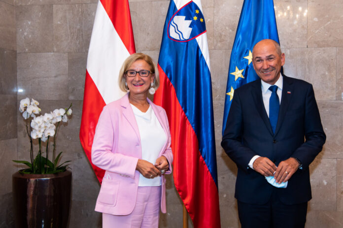 Predsednik vlade Janez Janša se je včeraj na delovnem kosilu srečal z deželno glavarko Spodnje Avstrije mag. Johanno Mikl-Leitner. Sogovornika sta se dotaknila COVID situacije na obeh straneh meje in prioritet predsedovanja Slovenije Svetu EU.