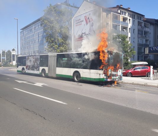 Na Dunajski cesti je danes okrog 14. ure zagorel avtobus Ljubljanskega potniškega prometa!