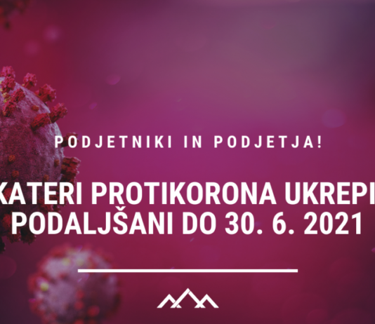Vlada je 24. 3. 2021 s sklepom podaljšala veljavnost nekaterih protikorona ukrepov do 30. 6. 2021. Med ukrepi, za katere je pristojna Finančna uprava, se podaljšuje pridobitev izredne pomoči v obliki mesečnega temeljnega dohodka, povračilo izgubljenega dohodka zaradi karantene ali varstva otrok in tudi ukrep delnega povračila nekritih fiksnih...